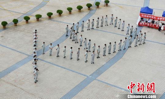 7月8日,湖南长沙县泉塘街道的工人们统一着装在一企业前坪上排出了“70亿人口”四个大字,以此迎接即将到来的第26个世界人口日,呼吁大家关注人口问题。