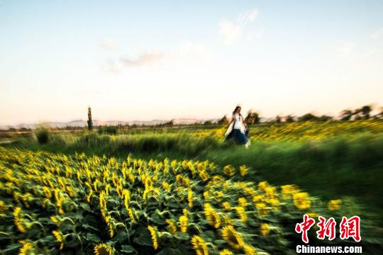 进入7月盛夏,甘肃戈壁城市敦煌远郊遍野的向日葵灿烂绽放,吸引大批游客和摄影爱好者专程驱车来至此,和惊艳怒放的向日葵“亲密接触”,并合影留念。这其中,既有家庭郊游,也有中小学生拍毕业照,还有年轻情侣选景拍婚纱照。