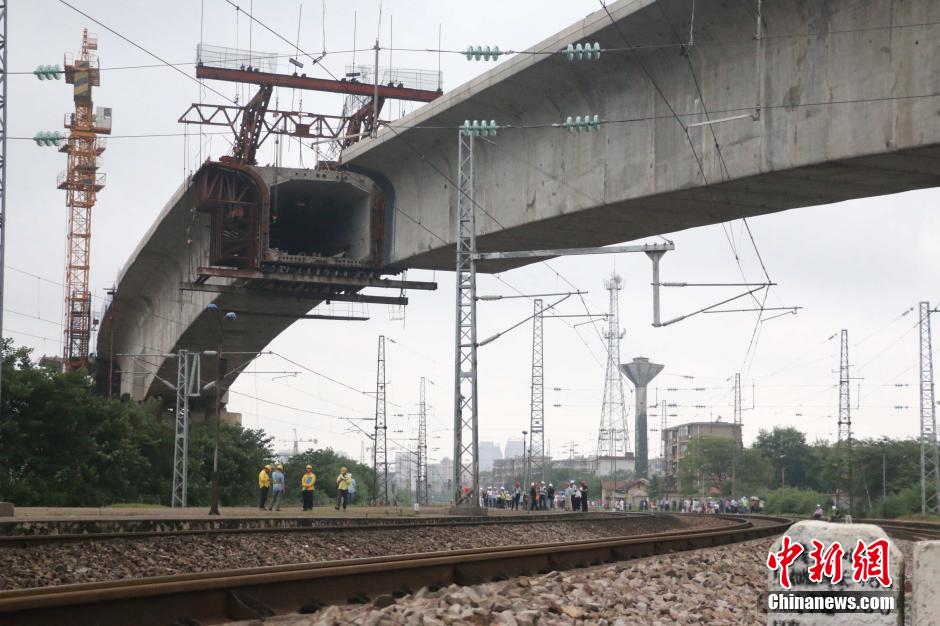 长株潭城铁湘潭特大桥上跨湘潭火车东站客场,桥梁将跨过包含沪昆铁路上下行、湘钢铁路专用线在内的5股道。 刘双双 摄