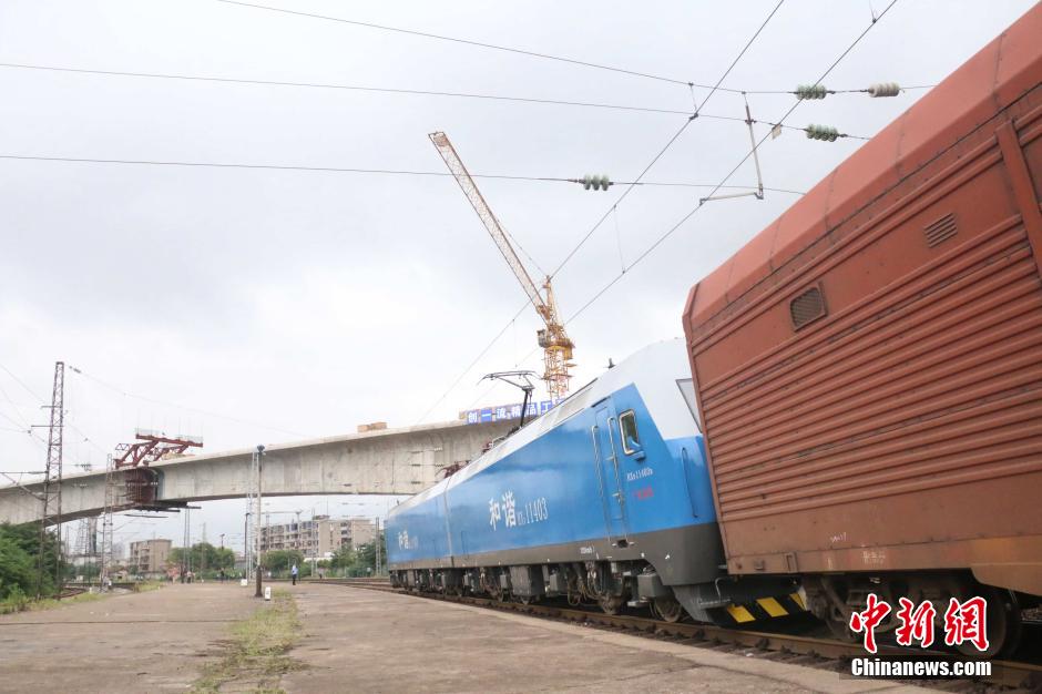 长株潭城际转体桥完成转体后,站内列车恢复运行。 刘双双 摄
