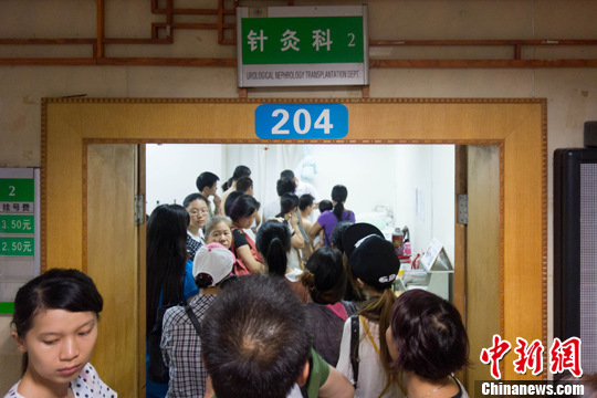 7月13日,不少市民前往各大医院接受“三伏灸”,求得“冬病夏治”。黄威铭 摄