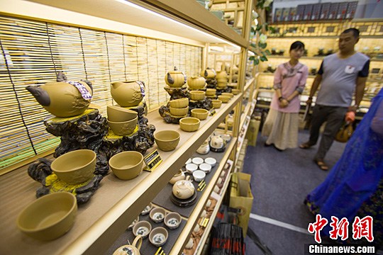 7月17日,山西太原民众在感受茶具魅力。张云 摄