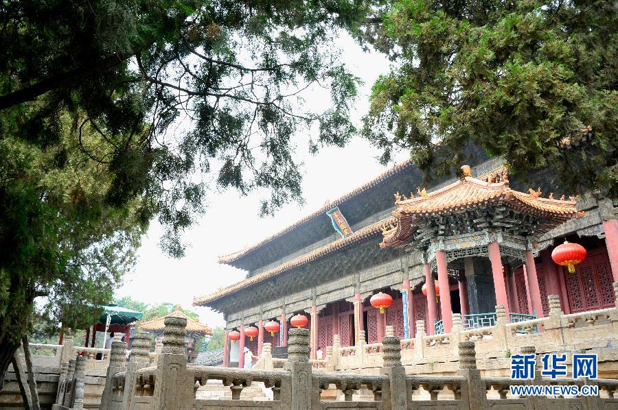 7月17日,游客在参观岱庙的主体建筑天贶殿。进入暑期,每天前往山东岱庙的游客络绎不绝,岱庙旅游日渐升温。 新华社记者 冯杰 摄