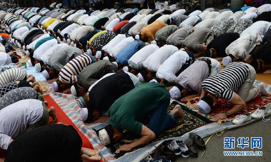 7月17日,西安穆斯林在清真西寺举行开斋节聚礼。当日,西安穆斯林结束一个月的斋月,迎来开斋节。 新华社记者 刘潇 摄