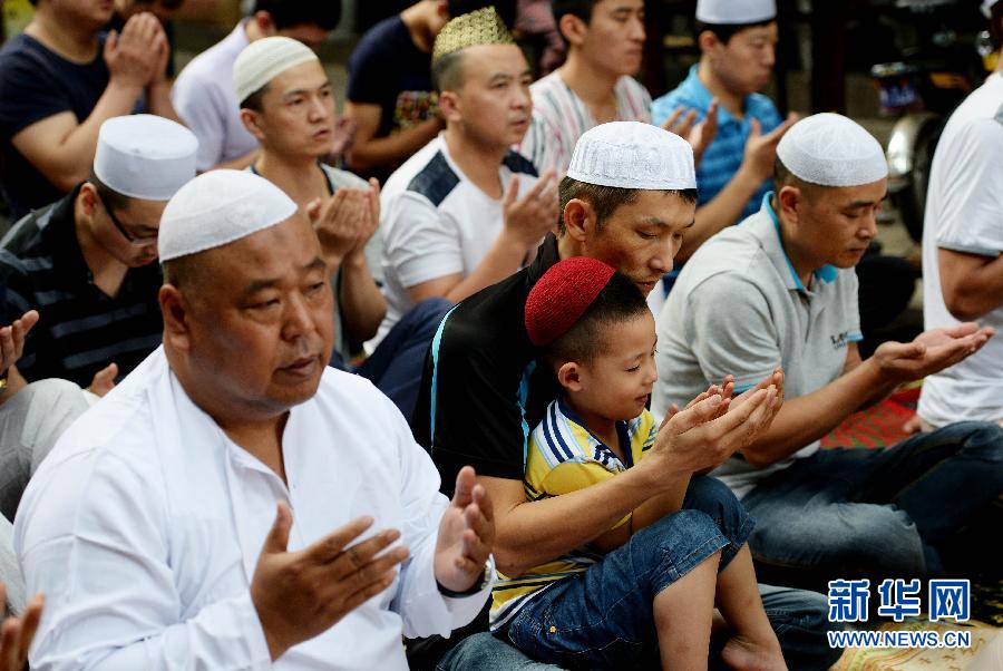 7月17日,西安穆斯林在清真西寺举行开斋节聚礼。当日,西安穆斯林结束一个月的斋月,迎来开斋节。 新华社记者 刘潇 摄