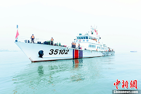 7月20日,海警35102舰列编福建省海警第二支队服役,这是福建泉州至莆田海域目前吨位最大、信息化程度最高、抗风力和续航力最强的618B型海警舰艇。中新社发 李晨 摄
