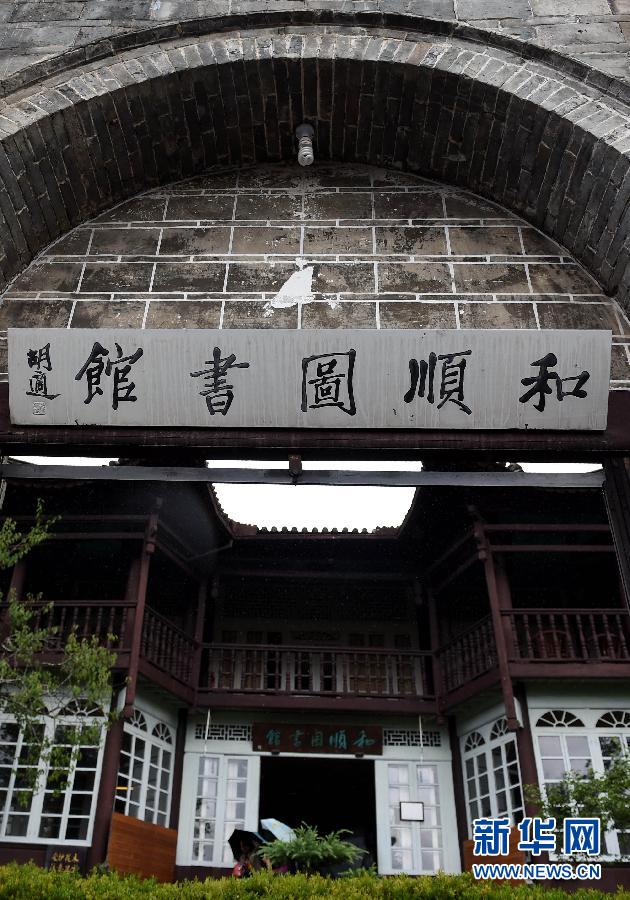 这是云南腾冲和顺图书馆一景(7月20日摄)。位于云南省腾冲县和顺古镇的和顺图书馆创办于1928年,藏书8万余册,其中古籍、珍本1万多册。该图书馆为中西合璧式的建筑群,由大门、中门、花园、馆舍主楼、藏书楼等组成,由当地华侨为振兴家乡文化而捐资创办,是全国建馆历史最长的乡村级图书馆。目前和顺图书馆有6个阅览室,4个书库和动、植物标本室等,吸引了不少当地村民和外地游客来此阅览、参观。2006年,国务院将和顺图书馆公布为全国重点文物保护单位。新华社记者 蔺以光 摄
