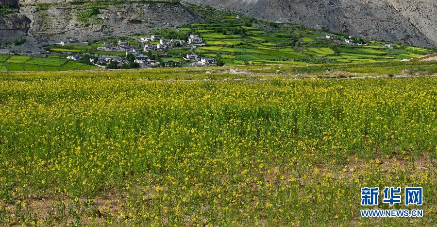 这是7月22日拍摄的西藏洛扎县境内盛开的油菜花。进入七月,西藏洛扎县境内山谷里油菜花盛开,雪山、鲜花、村庄构成美丽的画面。 新华社记者 普布扎西 摄