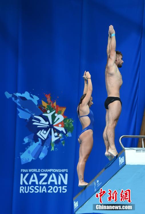 7月24日,一对男女选手在跳水馆进行赛前练习。第16届国际泳联世界锦标赛将于7月24日至8月9日在俄罗斯喀山市举行。跳水项目将于7月24日至8月2日举行,游泳项目将于8月2日至8月9日举行,此外,花样游泳、水球、高台跳水、公开水域游泳等项目也将在此期间举行。中新社发 侯宇 摄