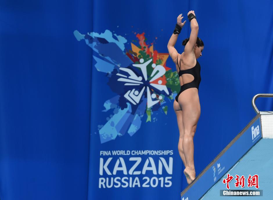 7月24日,一名女选手在跳水馆进行赛前练习。第16届国际泳联世界锦标赛将于7月24日至8月9日在俄罗斯喀山市举行,跳水项目将于7月24日至8月2日举行。中新社发 侯宇 摄