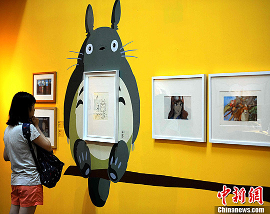 图为观众在参观宫崎骏大师《龙猫》手稿原型。中新社发 崔煜坤 摄