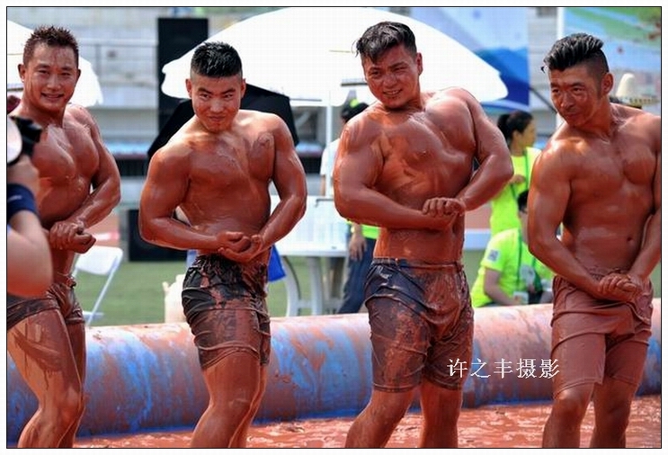 开心快乐的泥浆足球
