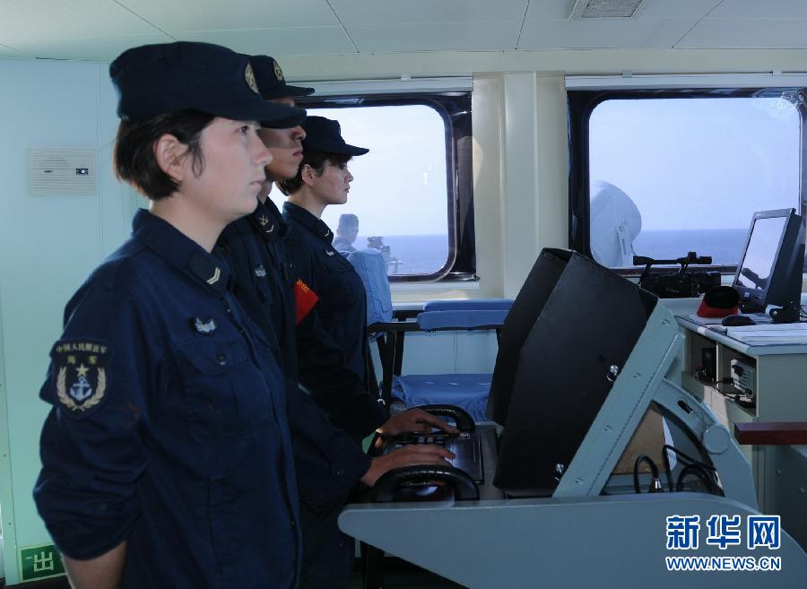 这是2013年3月29日拍摄的井冈山舰上的雷达兵。海军首批作战舰艇女水兵在这次南海舰队远海训练中崭露头角。在南海舰队远海训练舰艇编队不少战斗岗位上,活跃着一批飒爽英姿的女水兵。与以往大多集中在卫勤部门的女兵不同,她们是我国海军第一批分配到作战舰艇战斗岗位的女水兵。