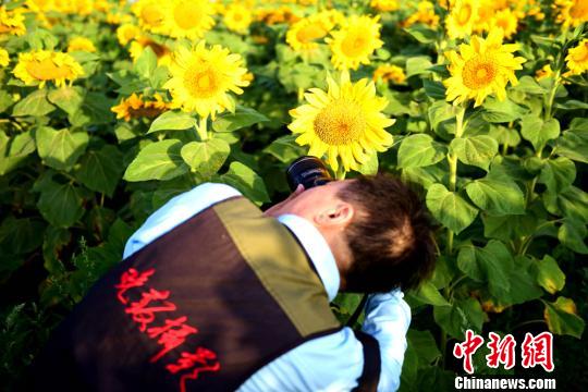 一望无际的向日葵连日来竞相盛开,吸引了全国各地摄影家慕名而来,齐聚戈壁小城“发现”自然之美。常迎迎 摄