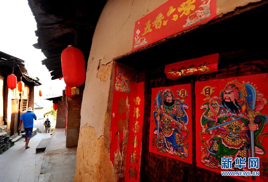 8月2日,当地居民行走在古街上。古街家家户户有挂门灯、贴门神的传统。新华社记者 陶明 摄
