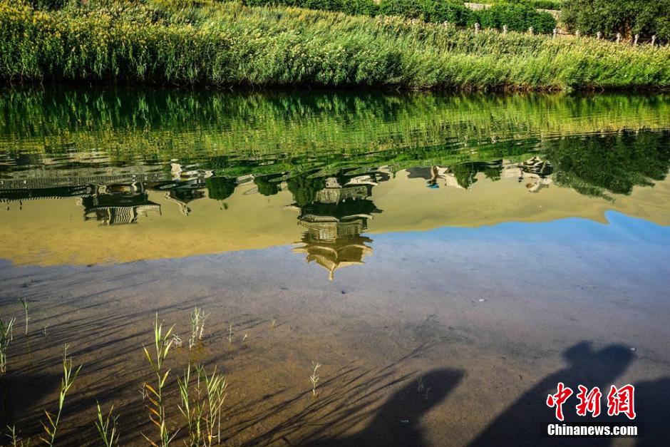 记者梳理发现,月牙泉连续下降多年的水位,在近年逐渐恢复并保持在1.5米左右,而且时常会出现泉水上涨溢出围栏的景象。图为敦煌月牙泉美丽的倒影。王斌银 摄