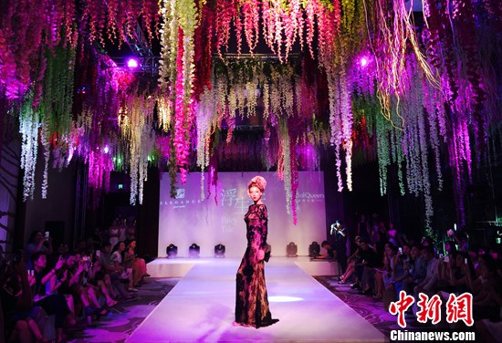 8月1日,“西南首届私人定制婚展”在重庆解放碑拉开帷幕,模特穿婚纱走秀吸引众多市民围观。图为婚展现场,模特穿婚纱走秀。 钟欣 摄