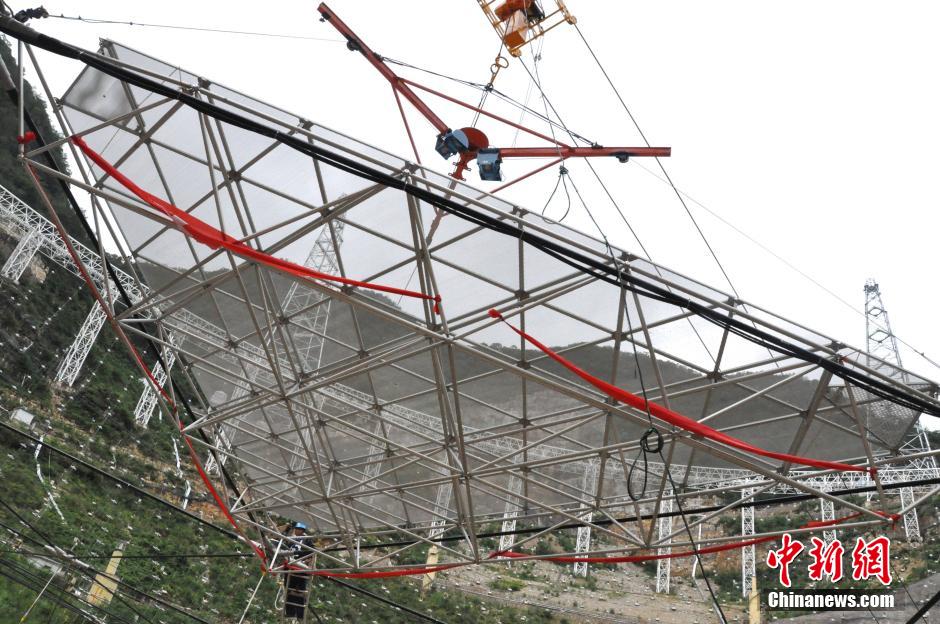 据悉,FAST是目前世界上在建的口径最大、最具威力的单天线射电望远镜,因此有了“世界天眼”的美称。中新社发 刘朝荣 摄