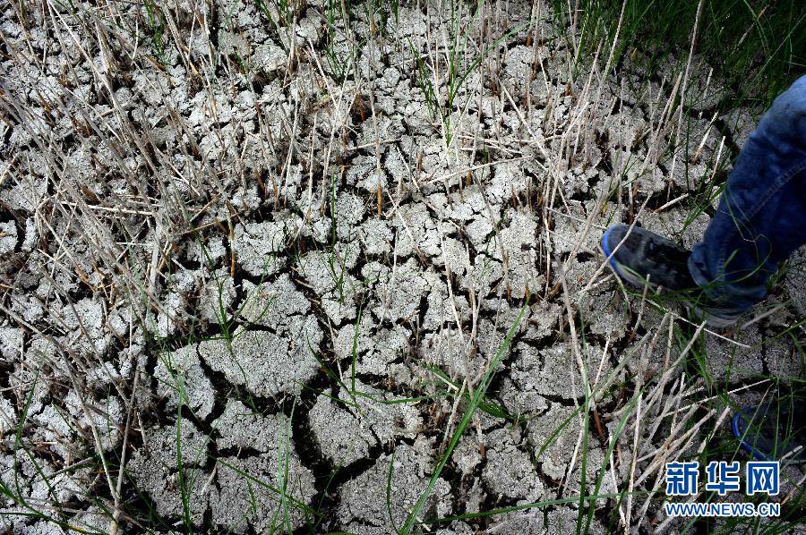 干旱造成湿地表面出现龟裂(8月1日摄)。近日,天津滨海新区北大港水库因入夏以来降雨量偏少,湿地水源补给不足,天气炎热,蒸发量增大,部分区域出现干旱迹象。北大港水库集水面积达150平方公里,是北大港湿地自然保护区的重要组成部分,它地形总体上是西北部高,东南部低。目前,西北部水库湿地表面大面积龟裂,河流和低洼处干涸,野生动植物减少。新华社记者 岳月伟 摄