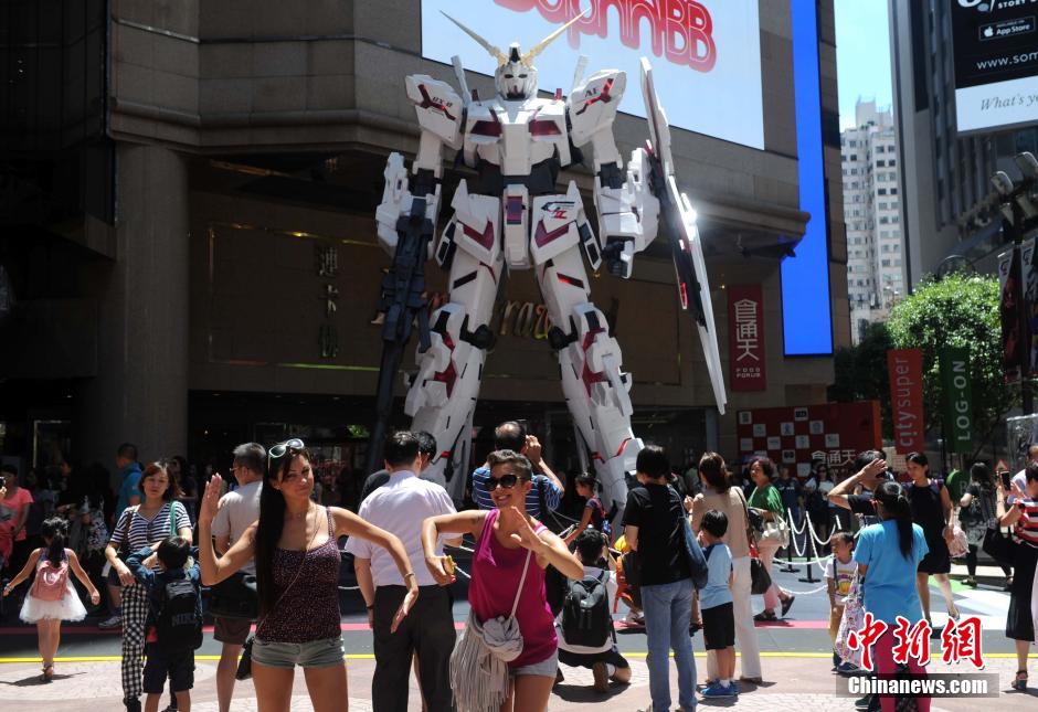 8月3日,有7.5米高、1:3 RX-0独角兽高达在香港展出。今年夏天,香港时代广场变身“高达基地”。中新社发 谭达明 摄