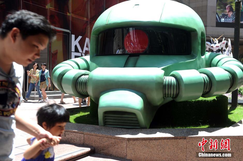 8月3日,香港商业区展出巨型3米宽、绿色渣古MS-06FII,尽显自护军军威。中新社发 谭达明 摄