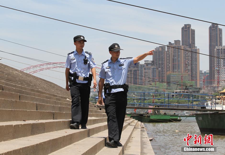 民警在重庆朝天门码头江边巡逻。 周毅 摄
