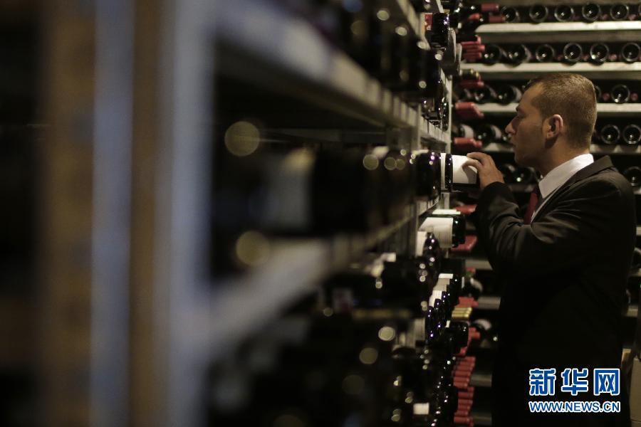 7月2日,在西班牙赫罗纳附近的罗卡三兄弟餐厅,一名侍酒师在酒窖里挑选葡萄酒。