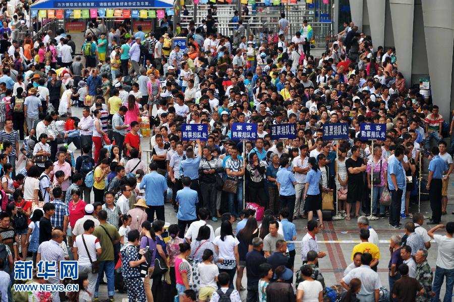 8月5日,旅客在兰州火车站广场上排队等待改签和退票。受暴雨影响,8月5日至7日,Z128、Z105、Z273等22趟经陇海铁路进出甘肃、青海、新疆、西藏等地的列车停运;兰州、天水等火车站到发站列车均出现大面积晚点。仅兰州火车站8月4日、5日两天就有超过2万名旅客现场退票或改签。兰州火车站目前已启动应急预案,通过加开退改签窗口、专人引导等方式帮助滞留旅客,同时公路客运部门也投入应急储备运力,方便旅客出行。铁路部门提醒旅客:对已公布全程停运的车次,可在互联网和窗口办理退票,退票时间延长至开车后5日内。 新华社记者 陈斌 摄