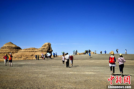 盛夏八月,敦煌雅丹国家地质公园也迎来了一年一度的旅游高峰,游客在此观光游览、拍照留念。据统计,仅8月3日进入雅丹国家地质公园游览的游客达到4600多人,创历史同期最高纪录。王斌银 摄