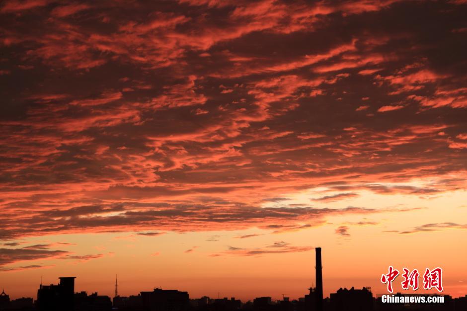 经历连续强降雨,8月5日傍晚古城西安上空迎来火烧云。刘尼威 摄