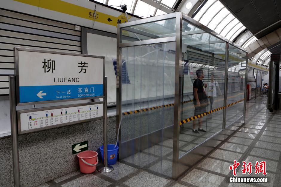 8月6日,乘客在北京地铁13号线柳芳站的空调候车亭内等车。两座特殊的候车亭日前在13号线柳芳站站台启动。在站台搭建的玻璃隔断里装上了空调,为候车的乘客送上凉爽。据悉,这种在暑运高温站加装的空调候车亭是提升乘客候车感受的尝试,但受到多重条件制约,目前无推广计划。 中新社发 李慧思 摄