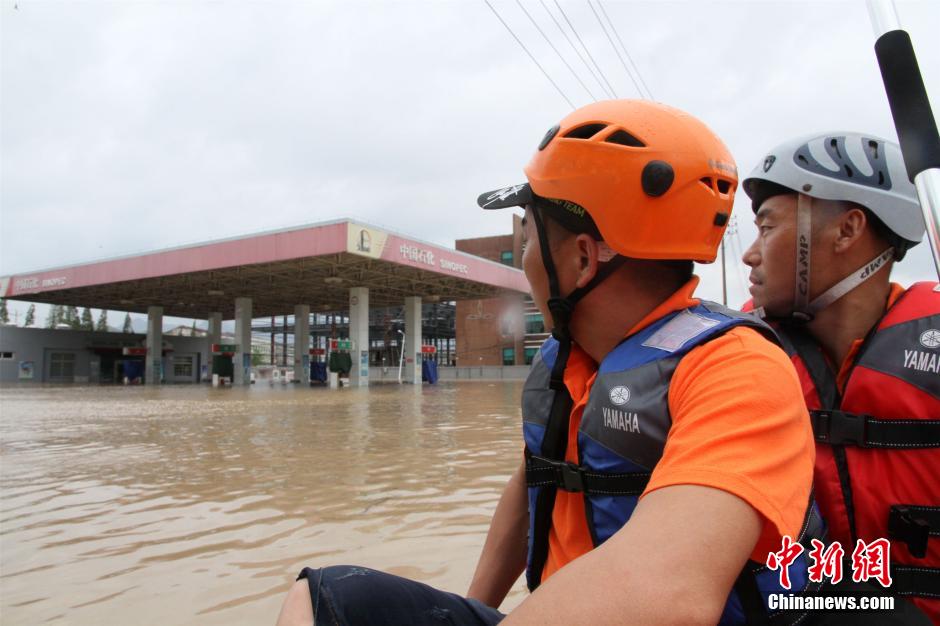 8月9日,浙江省温州市平阳县受“苏迪罗”影响,多地成“海景”。武警官兵、民间救援队积极展开救援“海”上救援。今年第13号台风“苏迪罗”虽不在温州登陆,但严重影响温州,局部地区降水量超过百年一遇标准,甚至超历史实测记录。 中新社发 张茵 摄