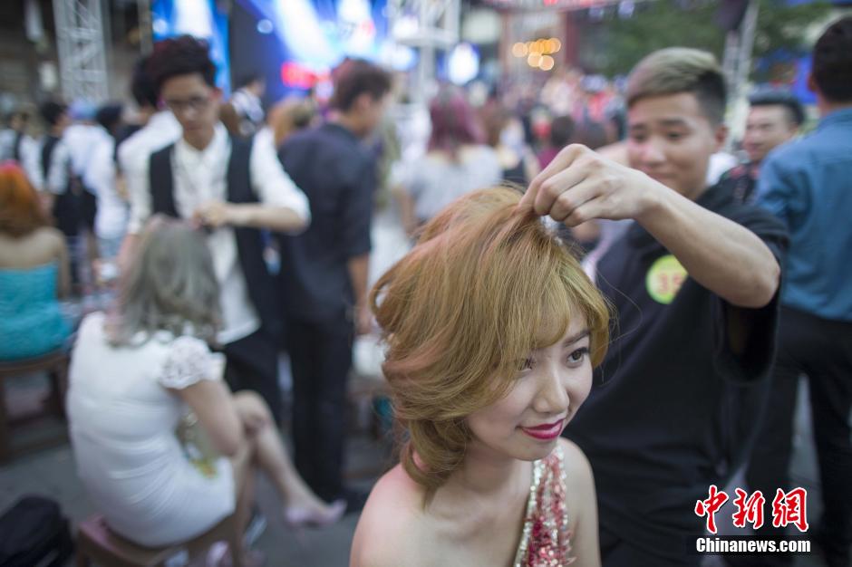 太原街头上演时尚创意发型秀