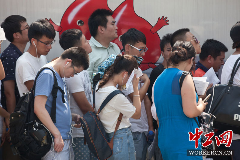 8月13日,献血者在烈日下排队。 中工网记者 李雪峰摄