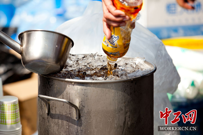 献血点附近商铺免费提供冷饮为献血者解暑。 中工网记者 李雪峰摄。