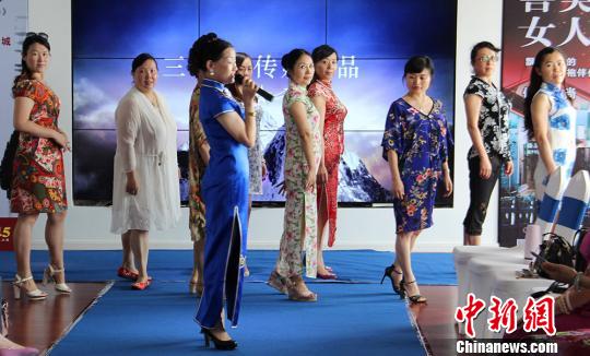 8月14日,旨在突出江苏女性的真善美,弘扬旗袍文化的“走进画中·最美江苏”万人旗袍长卷秀海选在苏州凯宾斯基酒店展开,苏州三千善传媒请来专业摄影师从报名的选手中挑选出1000位符合“真善美”要求的女性进行旗袍秀拍摄。图为工作人员在给选手们进行站姿培训。 寒单 摄