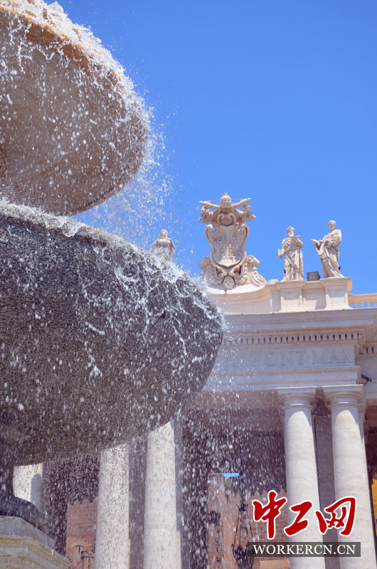 圣伯多禄广场喷泉(局部)。 中工网 秦笑语摄
