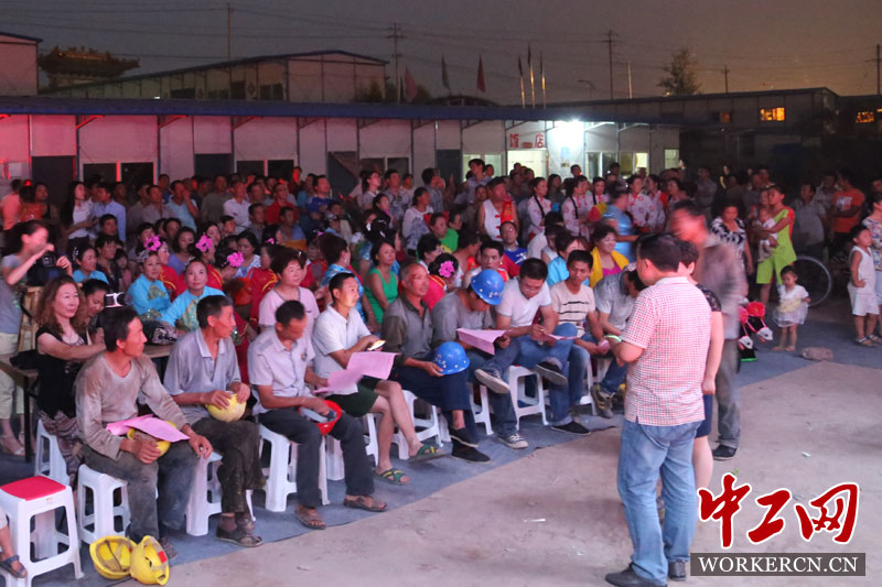 (中工网记者 姚星)2015年8月13日,山西省太原市晋源区总工会在金盛镇南阜村举办了“情系建设者·共圆中国梦”农民工慰问专场晚会。