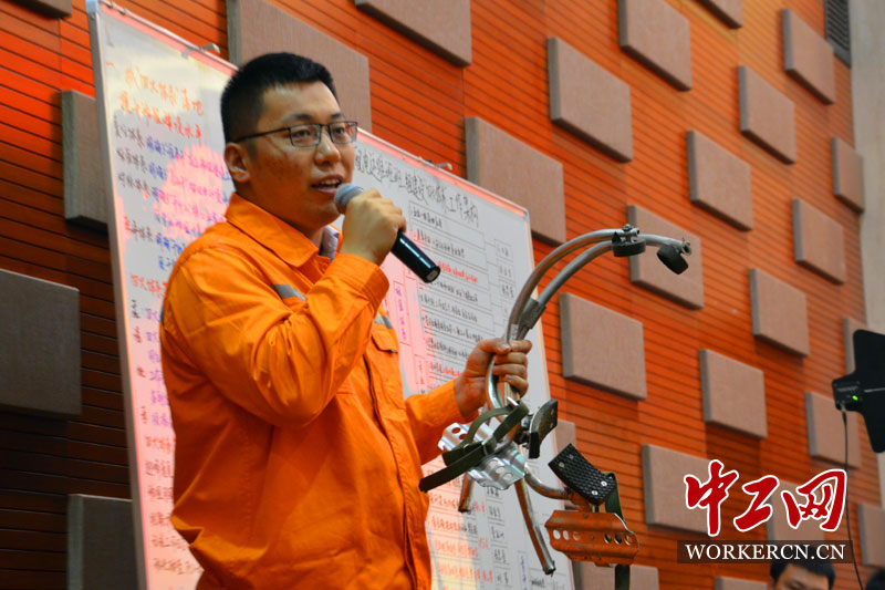 国网山东省电力公司淄博供电公司配电运维班李亚洲在会议上分享班组管理经验。