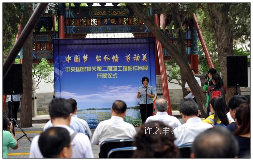 2015年8月18日,“中国梦-公仆情-劳动美——中央国家机关第二届职工摄影作品展”在北京颐和园开幕。展览作品是中央国家机关各部门职工利用工作之余的时间拍摄的,还有一部分是职工在自身工作岗位上兢兢业业、埋头苦干的工作成果,既是中央国家机关各部门职工陶冶情操、提高艺术修养的体现,同时展现出中央国家机关的工作状态和干部职工的精神风貌,表现出中央国家机关为实现民族复兴的伟大梦想所进行的探索和努力,具有深刻的现实意义。展览精选了300余幅(组)作品,分为“赛场英姿”、“基层传真”、“图话春节”、“精彩回顾”四个篇章进行展出。展示国家机关各部门职工以手机随手拍的方式,展示各地春节习俗、民间风俗的精彩作品。中央国家机关职工历届摄影作品展的精彩作品在“精彩回顾”中也得到集中体现。工人日报-中工网记者许之丰摄影报道