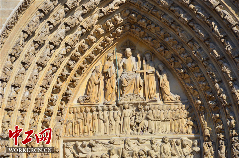 巴黎圣母院外观(局部)。 中工网记者 秦笑语摄
