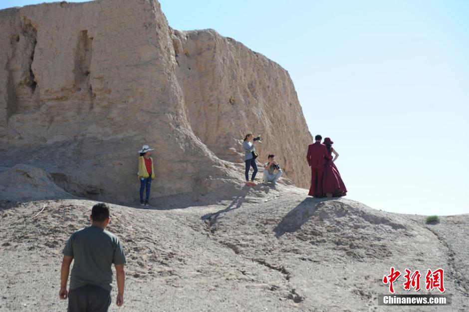 “城墙不让上去,麻烦您下来。”邢宗玄反复劝说正在古城上拍摄婚纱照的一群人。 杨艳敏 摄