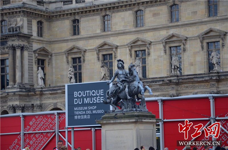 卢浮宫广场上的雕像。 中工网记者 秦笑语摄