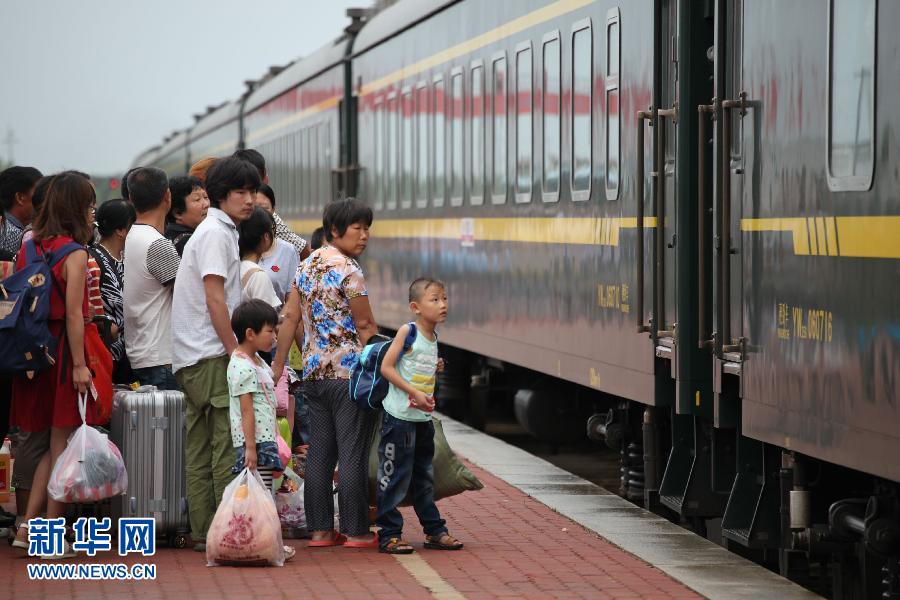 8月25日,两名小朋友跟随家长在山东省威海市文登火车站站台候车。开学在即,铁路运输迎来了“小候鸟”返乡高峰。在暑假与父母短暂团聚的孩子们踏上归程,准备迎接新学期的开始。 新华社发(陈宏青 摄)