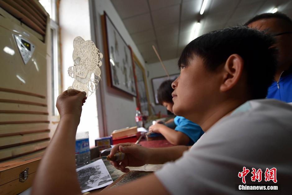 这件了不起的事,就是骑行环绕中国。今年4月,李卿孤身一人从家乡南阳出发,一路北上。因为身材较小,李卿改装了自己的自行车:减小了轮胎尺寸、截短了车辆的高度。他特意在车上插了一面旗子,写着一行大字:“袖珍人李卿、单车环中国。”图为光是一片皮影,从勾线到最后上色组合都要经过很多个小时的制作。中新网记者 金硕 摄