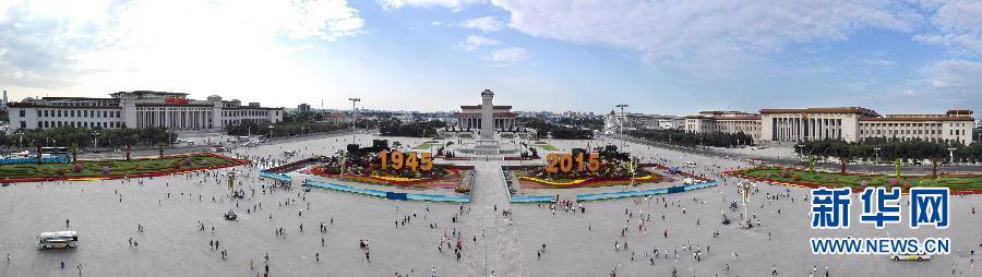 8月26日拍摄的天安门广场长城主题花坛(手机全景拍摄)。新华社记者 殷刚 摄 图片来源:新华网