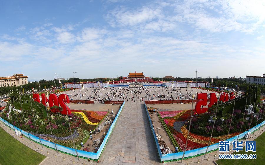 8月26日拍摄的天安门广场长城主题花坛。新华社记者 殷刚 摄 图片来源:新华网