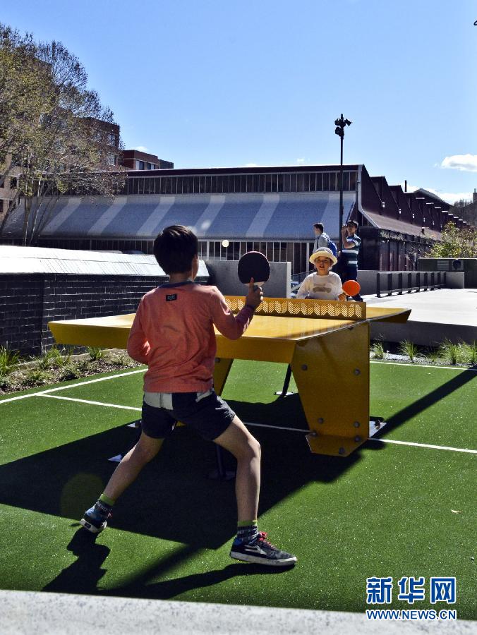 8月30日,在澳大利亚悉尼,两名男孩在曾经的货运铁道旁打乒乓球。