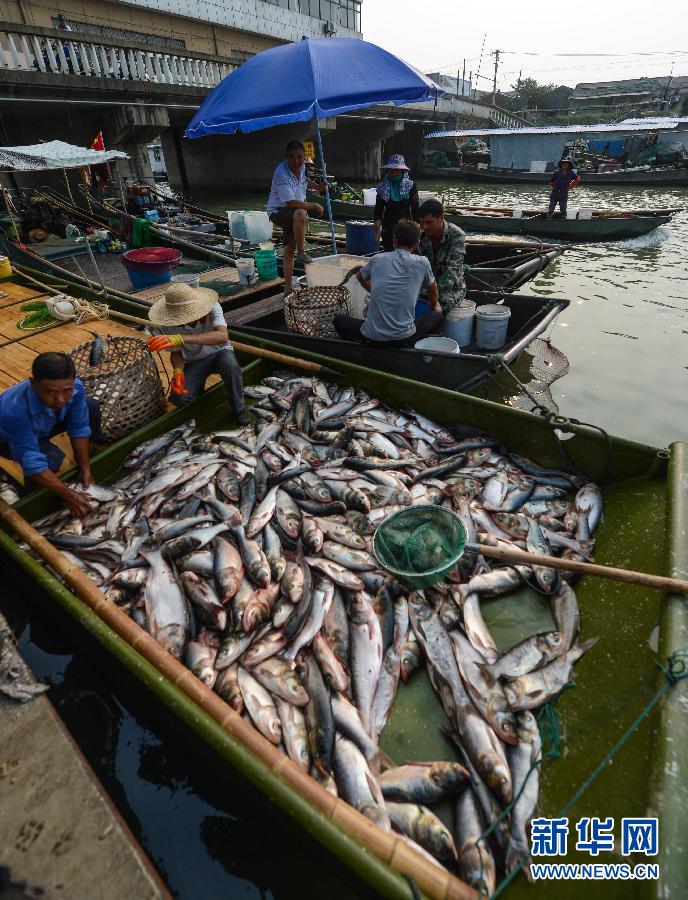 9月1日,幻溇村的渔民们在渔船上整理渔获。新华社记者 徐昱 摄