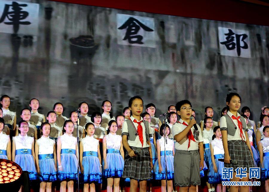 9月1日,上海市闸北区和田路小学学生们在“开学第一课”活动中表演诗朗诵《四行仓库》。